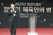 브릿지저널 김경미 기자 | 화성특례시의회는 17일, 화성종합경기타운 3층 라운지홀에서 열린 녩년 화성특례시 장애인체육인의 밤’행사에 참석해 한 해 동안 각자의 자리에서 땀과 열정으로 값진 성과를 이뤄낸 장애인 체육인들의 노고를 격려하고 축하했다. 이날 행사에는 배정수 의장을 비롯해 이용운·최은희 의원이 참석했고, 화성특례시장애인체육회 체육 가족 등 150여 명이 함께했다. 무대는 영상 시청, 시상식, 만찬 순으로 진행됐고 한 해의 도전을 되돌아보고 서로를 응원하는 따뜻한 연대의 장으로 마련됐다. 배정수 의장은 “선수 여러분은 훈련장을 지키는 순간마다 자신의 한계를 넘어서는 승리자였고, 서로를 격려하는 순간마다 공동체의 든든한 기둥이 되어주셨다”며 “장애인체육은 특별한 누군가의 운동이 아니라, 누구나 꿈꾸고 도전할 수 있는 도시의 가장 본질적인 가치임을 여러분이 몸소 증명해주셨다”고 깊은 존경을 표했다. 이어 “누구나 운동장을 밟을 수 있고, 누구나 메달을 향한 꿈을 꿀 수 있으며, 누구나 응원받을 자격이 있다는 기본을 지켜온 것이 바로 장애인 체육인 여러분”이라며 “장애인체육을 도시 혁신 정책의 중심축으로 삼아