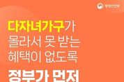 브릿지저널 김경미 기자 | ■ 다자녀가구가 몰라서 못 받는 혜택이 없도록 정부가 먼저 챙겨드립니다! ▷ 혜택알리미 - 내가 몰라도 찾아서 알려주는 개인 맞춤형 알림 서비스 · 다자녀 국가장학금 · 사회적 배려대상자 도시가스요금 경감 · 전기 요금 복지할인 · 에너지복지요금 지원 · 다자녀가구 자동차취득세 감면 ※ 소득, 거주지 등 개인별 상황에 따라 받을 수 있는 혜택은 달라질 수 있어요. ■ 청년이 몰라서 못 받는 혜택이 없도록 정부가 먼저 챙겨드립니다! ▷ 혜택알리미 - 내가 몰라도 찾아서 알려주는 개인 맞춤형 알림 서비스 · 청년 일경험 지원 · 청년농 창업투자 심층 컨설팅 · 청년주택드림 청약통장 · 청년 월세 한시 특별 지원 · 청년 문화예술패스 지원 ※ 소득, 거주지 등 개인별 상황에 따라 받을 수 있는 혜택은 달라질 수 있어요. ■ 어르신이 몰라서 못 받는 혜택이 없도록 정부가 먼저 챙겨드립니다! ▷ 혜택알리미 - 내가 몰라도 찾아서 알려주는 개인 맞춤형 알림 서비스 · 65세 이상 폐렴구균 국가예방접종사업 · 노인 무릎인공관절 수술 지원 · 노인 일자리 및 사회활동 지원