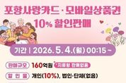 브릿지저널 정보영 기자 | 포항시가 침체된 민생경제에 활력을 불어넣기 위해 내달 4일부터 카드형·모바일 포항사랑상품권(포항사랑카드) 160억 원을 10% 할인된 금액으로 판매한다. 시는 올해 들어 이달까지 총 1,230억 원 규모의 포항사랑상품권을 발행한 데 이어, 이번 할인 판매분 160억 원을 유통해 지역 상권 내 소비를 촉진하고 경기 회복 흐름을 이어간다는 방침이다. 특히 시는 고유가·고물가로 인한 시민들의 생활 안정을 위해 지급하는 고유가 피해지원금의 지급수단에 포항사랑카드를 포함해 사용 편의를 높였으며, 이번 할인 판매를 병행해 지역 내 소비 활성화를 유도하고 자금의 역외 유출을 방지할 계획이다. 이번에 할인 판매하는 포항사랑상품권이 위축된 지역 소비를 촉진해 소상공인의 매출 회복에 도움이 되고 자금의 지역 내 순환 구조를 강화해 지역경제 회복을 견인하는 마중물 역할을 할 것으로 기대된다. 가정의 달을 맞아 제공되는 포항사랑카드 10% 할인 혜택으로 시민들의 가계 부담 완화에도 도움이 될 것으로 보고 있다. 개인 구매 한도는 월 40만 원, 보유 한도는 70만 원이다. &