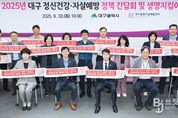 브릿지저널 김진석 기자 | 대구광역시는 9월 30일 오전 10시 시청 동인청사 2층 상황실에서 김정기 대구시장 권한대행 주재로 ‘대구시 정신건강·자살예방 대책 마련을 위한 정책 간담회’를 개최했다. 이번 간담회는 코로나19 이후 악화된 정신건강 문제와 자살률 증가 추세에 대응하기 위해 마련됐다. 정신건강 문제와 자살 예방은 개인의 문제가 아닌 지역사회 전체가 함께 해결해야 할 과제로, 다분야 및 범부서 차원에서 접근해야 한다는 인식 아래 민·관·학이 한자리에 모여 지역 맞춤형 정책과 통합 대응 방안을 모색했다. 간담회에는 대구시 관련 부서장을 비롯해 경찰청, 소방안전본부, 교육청, 대구신용보증재단, 대구신용회복위원회, 정신의료기관, 정신건강복지센터, 사회복지관 등 관계기관이 참석했다. 이 자리에서 대구시는 추진 중인 5개 분야, 15대 핵심과제, 23개 자살예방사업을 소개했다. 또한, 경찰·소방·교육·복지·서민금융 등 기관별 사업 현황과 대상별 자살예방 정책 제안을 공유하며 정책을 점검·보완하고 타 기관과의 연계 협력 강화 방안을 논의했다. 김정기 대구광역시장 권한대행 행