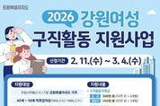 브릿지저널 윤나영 기자 | 속초시와 속초여성새로일하기센터가 속초시에 거주하는 40세 이상 59세 이하 미취업 여성을 대상으로 ‘2026년 강원여성 구직활동 지원사업’ 참여자를 모집한다. 강원여성 구직활동 지원사업은 취업을 준비하는 여성에게 구직활동에 필요한 비용을 지원해 경제활동 재진입을 돕는 사업이다. 신규 참여자에게는 최대 300만 원, 재참여자에게는 최대 150만 원의 구직활동지원금을 지원한다. 지원 기간 중 취·창업에 성공해 3개월 이상 근속하면 50만 원의 취·창업 성공금도 지급한다. 신청 기간은 2월 11일부터 3월 4일까지다. 지원 대상은 모집 시작일인 2월 11일 기준 속초시에 거주하는 40세 이상 59세 이하(1966년 2월 12일~1986년 2월 11일) 미취업 여성으로, 기준 중위소득 60% 초과 150% 이하 가구의 구성원이다. 신청은 강원일자리정보망을 통한 온라인 접수로 진행된다. 자세한 사항은 속초시 또는 속초여성새로일하기센터로 문의하면 안내받을 수 있다.