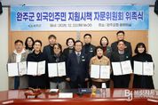 브릿지저널 윤나영 기자 | 완주군이 외국인 주민 지원 정책의 체계적 추진을 위해 ‘외국인주민 지원시책 자문위원회’를 구성하고, 지난 23일 중회의실에서 위촉식을 열었다. 위원장인 문성철 부군수를 비롯해 관계 공무원, 학계, 경찰, 노동청, 가족센터 등 다양한 분야의 전문가 12명이 참여한다. 자문위원회는 완주군 외국인정책팀 신설(7월)과 완주외국인지원센터 개소(8월)에 이어, 외국인 주민들의 안정적인 정착과 지역사회 통합을 위한 정책 추진을 더욱 내실 있게 하기 위해 출범했다. 위촉식에서는 완주군 외국인정책 향후 추진 방향에 대한 심도 있는 논의가 이루어졌다. 유희태 완주군수는 “완주군에는 5,190명의 외국인 주민이 함께 살아가고 있으며, 다양한 국적과 문화적 배경을 가진 이들이 우리 지역의 소중한 이웃으로 자리 잡고 있다”며 “자문위원회는 외국인 주민들의 실제 생활 속 어려움과 요구를 반영하고 지역사회와 상생을 도모하는 중요한 창구가 될 것”이라고 말했다. 이어 “위원들의 전문성과 경험을 바탕으로 외국인정책이 실효성 있고 지속가능하게 발전하길 기대하며, 외국인 주민과 지역사회가 조화