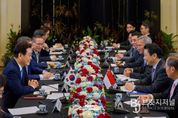 브릿지저널 김경미 기자 | 싱가포르를 국빈 방문 중인 이재명 대통령은 3월 2일 오전 '로렌스 웡(Lawrence Wong)' 싱가포르 총리와 정상회담을 갖고 양국 간 전략적 동반자 관계 심화 방안과 한반도 및 중동정세 등 주요 국제 현안에 대해 폭넓게 논의했다. 웡 총리는 작년 11월 서울에서의 정상회담 이후 4개월 여만에 싱가포르에서 이 대통령을 맞이하게 되어 기쁘다며 “이번 방문은 전략적 동반자인 한-싱가포르 간 호혜적 실질 협력 사업을 가속화하기 위한 중요한 동력이 될 것”이라며 이 대통령의 방문을 환영했다. 이 대통령은 “친한 친구를 만난 것처럼 반갑다”고 화답했다. 이어 웡 총리가 작년 정상회담 때 수교 50주년 만에 양국 간 전략적 동반자 관계를 체결한 것에 대해 ‘좋은 것은 언제나 기다릴 가치가 있다’고 언급한 것을 상기하고, ‘오랜 신뢰의 동반자’인 양국 관계의 새로운 이정표를 계속 세워 나가자고 말했다. 이 대통령은 대외적으로 안보‧경제 환경이 어려운 가운데 양국이 전략적 안보협력, 경제적 연대, 미래·첨단기술 분야 협력이라는 3대 축을 중심으로 협력을 추진해 나가자고 했다. 두 정상은 국방‧