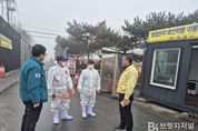 브릿지저널 윤나영 기자 | 김제시 농업기술센터는 지난 16일 방역 최일선인 용지 산란계 밀집단지‘거점소독시설, 통제초소, 알 환적장’을 방문해 조류인플루엔자(AI) 확산 차단을 위한 차량 및 대인 소독 상황과 소독시설의 정상 작동 여부 등 방역상황을 점검하고 초소 현장 근무자들을 격려했다고 밝혔다. 이번 방역 현장 방문은 고병원성 AI가 6개 시·도, 20개 시·군에서 전국적으로, 오리, 산란계, 육계 등 여러 축종에서 발생 양상을 보이고, 최근 우리 시 인접 지역인 익산의 육용종계 농장에서도 고병원성 AI가 확진됨에 따른 위중한 상황에서 방역 현장 방문을 통한 근무자 격려와 축산농가 및 일반 시민들의 관심도 제고를 위해 진행됐다. 시는 고병원성 조류인플루엔자(AI), 아프리카돼지열병(ASF), 구제역(FMD) 등 악성 가축전염병 예방을 위해 가축 방역상황실을 상시 운영하고 있으며, 거점소독시설 3개소, 알 환적장 1개소, 밀집단지 통제초소 1개소, 농장초소 11개소, 철새도래지 통제초소 1개소 등 총 17개소의 방역초소를 운영하고 있다. 이승종 소장은“지난 2년 연속 용지면 산란계 밀집단지 고병원성 AI 발생