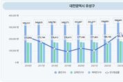 브릿지저널 정보영 기자 | 대전 유성구가 전국적인 인구 감소와 지방 소멸 위기 속에서도, 최근 10년간 대전에서 유일하게 인구가 늘어난 것으로 나타났다. 행정안전부 주민등록 인구통계 분석 결과, 유성구 인구는 10년 전인 지난 2016년(이하 12월 31일 기준) 34만 3,222명에서 2025년에는 36만 7,534명으로 2만 4,312명이 증가(증가율 7.1%)했다. 같은 기간 대전시 전체 인구는 151만 4,370명에서 144만 729명으로 7만 3,641명이 감소(감소율 4.9%)했으며, 나머지 4개 자치구도 많게는 2만 7,000명에서 적게는 1만 6,000여 명씩 인구가 줄었다. 특히 유성구는 2016년 34만 3,222명, 2017년 34만 8,428명, 2018년 34만 9,790명 등 매년 완만한 증가세를 보이다가 2023년 36만 6,845명, 2024년 36만 9,468명 등 37만에 육박하는 급증세를 나타냈다. 이러한 유성구의 인구 증가세는 최근 대규모 택지 개발 및 공동주택 분양 등의 감소로 잠시 주춤하고 있지만, 출생아와 청년 인구는 오히려 늘면서 ‘대한민국 대표 젊은 도