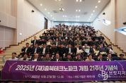 브릿지저널 김경미 기자 | (재)충북테크노파크(원장 박순기, 이하 충북TP)는 10월 27일 개원 21주년을 맞아 충북TP 선도기업관 세미나실에서 기념식을 개최했다. 이날 기념식은 임직원 150여 명이 참석한 가운데 △기념 케이크 커팅식 △근속 직원 격려 △원장 기념사 순으로 간소화해 진행됐다. 충북TP는 산·학·연·관 협력체계 조성으로 지역경제 활성화는 물론 국가경제 발전에 기여하기 위해 2003년 설립됐으며, 2004년부터 지역혁신거점기관으로서 지역 전략산업 분야 기술을 고도화하고 기술집약적 △연구개발(R&D)체계 △기업 성장 지원체계 △산업 생산체계 △기술 지원체계 등을 지원해왔다. 현재 충북TP는 △제천한방천연물센터 △옥천전략산업클러스터센터 △진천 차세대융합기술혁신센터 등 24개 거점을 운영하며 충북 지역 산업 진흥과 경제 발전을 선도하고 있다. 21주년을 맞은 올해는 ‘충북 기업과 함께 성장하는 혁신 파트너’라는 비전과 AI활용 혁신과 지속가능한 경영으로 기업 경쟁력 강화라는 목표를 세우고 △전략산업 혁신과 신성장 동력창출 △균형발전과 지속가능 성장 기반 조성 △투명하고 책임있는 경영체계확