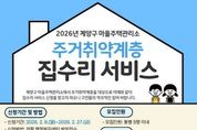 브릿지저널 김경미 기자 | 인천광역시 계양구는 작전동에 운영 중인 마을주택관리소에서 주거취약계층을 위한 집수리 서비스를 추진한다고 밝혔다. 올해 추진되는 집수리 서비스는 2025년 5차 신청 81가구에 대한 집수리가 지난해 12월 완료됨에 따른 사항으로, 오는 2월 9일부터 27일까지 관할 동 행정복지센터에 방문해 신청할 수 있다. 신청 서식과 세부 사항은 계양구청 누리집 ‘공지사항’에서 확인 가능하다. 신청 대상은 사용승인(준공) 이후 20년 이상 경과한 노후・불량 단독 및 공동주택 ('공동주택관리법'에 따른 관리주체가 있는 공동주택을 제외)에 거주하는 계양구 주민 중, 65세 이상 고령자, 독거노인, 장애인, 국가유공자 등 집수리 지원이 필요한 주거취약계층이다. 신청 분야는 도배・장판・샤워기・변기・방충망 등의 경보수 집수리이며, 현장 점검 후 집수리 교육을 이수한 자원봉사자들과 함께 작업이 진행될 예정이다. 구 관계자는 “접수된 신청 사항을 바탕으로 집수리 전문 인력이 현장을 방문해 수리가 필요한 부분을 면밀히 점검하고, 신속하게 지원하겠다.”라며 “주거 취약계층의 생활 불편을 줄이