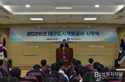 브릿지저널 김진석 기자 | 대구도시개발공사가 2026년 새해를 맞아 새로운 비전 제시와 청렴 실천 다짐을 통해 시민 신뢰 제고에 나섰다. 공사는 1월 2일 본사 대강당에서 전 임직원이 참석한 가운데 ‘2026년 시무식 및 NEW 비전 선포식, 반부패 청렴 결의대회’를 개최했다. 이번 행사는 어려운 대내외 경영 여건 속에서도 시민이 체감할 수 있는 성과를 창출하기 위한 조직의 실행력을 강화하고, 공공기관으로서 책임경영과 청렴문화를 확립하기 위해 마련됐다. 이날 시무식에서 정명섭 사장은 한 해 동안 맡은 바 업무를 성실히 수행해 온 임직원들의 노고를 치하하며, 2026년에도 열정과 추진력을 바탕으로 전사적 역량을 결집해 시민 중심의 성과를 만들어 나가자고 강조했다. 이어 진행된 NEW 비전 선포식에서는 미래 변화에 선제적으로 대응하고 도시혁신 전문기관으로 도약하겠다는 의지를 담아 새 비전인 “시민 행복과 공간 미래가치를 창출하는 도시혁신 주도 공기업”을 선포했다. 또한 전문성·상생·신뢰·혁신을 핵심가치로 제시하며 공공기관으로서의 역할과 책임을 강화해 나가겠다는 경영 방향을 공유했다. &n