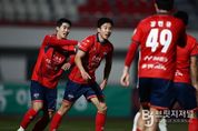 브릿지저널 정보영 기자 | 끝까지 포기하지 않고 싸운 끝에 소중한 승점 1점을 쌓았다. 김천상무프로축구단(대표이사 이재하)이 3월 17일 화요일 19시 30분, 김천종합운동장에서 열린 ‘하나은행 K리그1 2026’ 4R 홈경기에서 광주FC(이하 광주)와 1대 1로 비겼다. 이른 시간 퇴장으로 수적 열세에 처한 김천상무는 선제골을 내줬지만, 후반 추가시간 극적인 동점골로 무승부를 기록했다. 김천상무는 4-4-2 포메이션을 가동했다. 백종범이 골키퍼 장갑을 꼈다. 백포는 박철우, 이정택, 김현우, 김태환이 구축했다. 중원에서는 김이석과 박태준이 호흡을 맞추었다. 양쪽 날개에는 홍윤상과 전병관이 자리했다. 이어 이건희와 이상헌이 최전방에 포진했다. 퇴장 변수, 10명으로 버티며 전반 0대 0 마무리 김천상무는 경기 시작과 함께 아쉬움을 삼켰다. 전반 2분, 수비 진영에서 넘어온 공을 이건희가 상대 수비와 경합하며 떨어뜨렸다. 뒤에서 달려오던 홍윤상이 이를 마무리했으나, 슈팅이 뜨고 말았다. 기회 뒤에 바로 변수가 발생했다. 전반 7분, 김천상무가 VAR 끝에 퇴장으로 1명을 잃으며 수적 열세