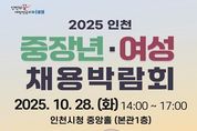 브릿지저널 김경미 기자 | 인천광역시는 중장년과 여성의 새로운 일자리 도전과 사회 참여 확대를 지원하기 위해 오는 10월 28일 인천시청 중앙홀에서 ‘2025 인천 중장년·여성 채용박람회’를 개최한다고 밝혔다. 이번 박람회는 올해 다섯 차례 진행된 ‘2025 인천 상설 채용박람회’의 마지막 일정으로, 인천시와 성평등가족부, 중부지방고용노동청 등 10개 기관이 공동으로 주최한다. 이번 행사에는 33개 기업이 참여해 현장 면접을 진행하고, 구직자들에게 실질적인 취업기회를 제공할 예정이다. 또한 채용관 외에도 ▲이력서 사진 촬영 ▲퍼스널컬러 진단 ▲인공지능(AI) 캐리커처 제작 등 구직자의 이미지 개선과 취업 경쟁력 향상을 위한 다양한 체험프로그램이 함께 운영된다. 연계행사로는 대회의실에서 ‘여성의 취·창업 역량 강화’를 위한 특별강연이 오전·오후로 두 차례 나뉘어 진행된다. 오전 1차 특강에서는 개그맨 출신 사업가 고명환이 강사로 나서 중장년층의 창업 전환을 주제로 실질적인 경험과 노하우를 전달하고, 오후 2차 특강에서는 과학 유튜버‘궤도’가 디지털 리터러시 향상과 인공지능(AI)을 활용한