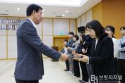 브릿지저널 김경미 기자 | 충주시는 1일 월례조회에서 하반기 친절공무원과 친절부서를 선정해 표창을 수여했다. 이번에 선정된 친절공무원은 △교통정책과 김성동(행정 8급) △차량민원과 정혜원(행정 8급) △여성청소년과 이은정(행정 7급) △민원봉사과 이성미(행정 7급) △축수산과 이가희(농업 8급) △금가면 이주연(행정 8급) △산척면 김해인(행정 7급) △호암.직동 원종희(사회복지 8급) △봉방동 김건영(행정 7급) △봉방동 강완지(행정 8급) 등 총 10명이다. 친절부서로는 민원봉사과와 살미면이 선정됐다. 시는 시청 누리집 등을 통해 시민이 추천한 직원을 포함, 민원처리 건수가 많은 상위 15개 부서와 25개 읍면동을 대상으로 전화와 방문 응대 서비스에 대한 친절도 조사를 실시했다. 특히, 시민행복콜센터의 전화 친절도 평가와 시민평가위원들의 현지 암행평가를 통해 높은 점수를 받은 공무원 10명과 2개 부서를 최종 선정했다고 밝혔다. 시민평가위원들의 주요 선정 사례로는 △민원 방문 시, 밝은 미소와 눈빛으로 응대 △정확한 업무 파악으로 이해하기 쉬운 용어 선택 등 민원인의 눈높이를 고려한