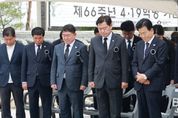 브릿지저널 윤나영 기자 | “김주열 열사를 비롯한 수많은 선열의 희생이 오늘의 민주주의를 만들었음을 잊지 말아야 합니다.” 김관영 전북특별자치도지사는 19일 남원시 김주열 열사 추모공원에서 열린 제66주년 4·19혁명 기념식에 참석해 민주영령을 추모하고, 4·19 정신 계승 의지를 다졌다. 이날 행사는 정동영 통일부 장관과 박희승 국회의원, 최경식 남원시장, 이영노 남원 김주열 열사 기념사업회장, 도민 등 300여 명이 참석한 가운데 민주주의 발전의 의지를 다졌다. 기념식은 국민의례에 이어 김주열 열사 약력 소개, 기념사, 추도사, 남원시립국악단의 기념 공연, 4·19의 노래 제창, 묘역 참배 순으로 진행됐다. 특히 4·19혁명희생유족과 보훈단체 회원, 학생 등 다양한 세대가 한자리에 모여 민주주의의 소중함을 되새겼다. 김 지사는 추도사에서 “4·19혁명은 단순한 정권 교체를 넘어선 위대한 승리의 역사”라며 “평범한 시민의 힘으로 절대 권력을 무너뜨린 시민혁명의 전형이자 대한민국 민주주의의 초석을 다진 역사적 전환점”이라고 강조했다. 이어 “1960년 2월 28일 대구에서 피어오른 민주의 불꽃이 3