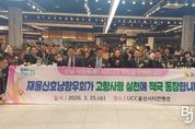 브릿지저널 김경미 기자 | 전라남도는 지난 25일 울산에서 열린 ‘재울산호남향우회 제56주년 정기총회’에 참석해 고향사랑 실천 도정설명회를 하고, 향우회와의 지속적인 교류협력을 강화키로 했다. 울산호남향우회는 1970년 설립돼 현재 약 33만 향우가 활동하고 있으며, 지역 교류와 고향 방문을 이어가고 있다. 특히 고향을 위해 꾸준히 기부 운동에 참여하고 울산지역 희망나눔캠페인 성금 전달과 명절맞이 생활용품 나눔행사를 진행하는 등 고향과 지역사회를 아우르는 다양한 봉사활동을 펼치고 있다. 행사에는 이성구 울산호남향우회 회장, 강영주 수석부회장, 박갑현 상무의장 등 200여 명의 향우가 참석했다. 정기총회는 국립의대 부속병원 설립 지정기부와 전남 사랑애 서포터즈 홍보 등 전남 고향사랑실천, 공로패 수여, 후원회 지원금 전달식 등 순으로 진행됐다. 이성구 재울산호남향우회장은 “향우회의 헌신은 고향을 향한 변함없는 사랑의 증거”라며 “앞으로도 봉사와 나눔을 통해 고향의 미래를 밝히는 든든한 동반자가 되겠다”고 말했다. 박주환 전남도 고향사랑과장은 “늘 고향 발전을 위해 앞장서 주시
