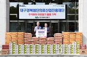 브릿지저널 김진석 기자 | 대구경북첨단의료산업진흥재단은 지난 29일, 저소득 취약계층을 위해 10kg 백미 50포, 샤인머스켓 50박스, 라면 50박스, 간이소화기 50개를 동구청에 기탁했다. 이번 기탁은 재단 임직원들이 대구 동구의 동서시장을 방문해 명절 성수품과 생필품 등을 직접 구매한 후, 해당 물품을 동구청에 전달하는 방식으로 진행됐다. 기탁한 물품은 동구 내 취약계층과 복지 사각지대 이웃들에게 전달 될 예정이다. 박구선 이사장은 “작은 정성이지만 어려운 이웃들이 따뜻한 명절을 보내는 데 도움이 되기를 바란다”고 말했다. 윤석준 동구청장은 “추석을 맞아 이웃을 먼저 생각해주신 대구경북첨단의료산업진흥재단에 깊은 감사를 드린다”며 “기탁해주신 물품은 도움이 필요한 분들께 소중히 전달하겠다”고 했다.