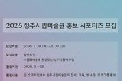 브릿지저널 김경미 기자 | 청주시립미술관은 미술관의 전시와 교육 프로그램을 시민의 시선으로 소개할 ‘2026 청주시립미술관 홍보 서포터즈’를 오는 30일까지 모집한다고 밝혔다. 문화예술에 관심 있는 시민이라면 누구나 서포터즈에 지원할 수 있다. 선발된 서포터즈는 오는 3월부터 12월까지 약 10개월간 활동하게 된다. 활동 기간에는 청주시립미술관 본관을 비롯해 △청주시립대청호미술관 △청주미술창작스튜디오 △오창전시관 등 분관에서 열리는 전시와 교육 프로그램을 직접 관람·체험하고, 전시 리뷰와 프로그램 참여 후기를 블로그·인스타그램 등 개인 SNS 채널을 통해 시민들에게 소개하는 역할을 맡는다. 활동 조건은 월 1회 이상 홍보 콘텐츠 온라인 게시, 활동 기간 중 교육 프로그램 1회 이상 현장 참여이며, 이를 충족할 경우 활동 증명서가 발급된다. 참여자에게는 미술관 전시 무료 입장은 물론 전시 도록, 아트상품 등 다양한 혜택도 제공될 예정이다. 서포터즈 지원을 희망하는 시민은 청주시립미술관 공식 누리집에서 지원 신청서를 내려받아 작성한 뒤, 전자우편으로 제출하면 된다. 박원규 청주시립미술관 관