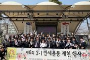브릿지저널 정보영 기자 | 공주시는 26일 산성시장 일원에서 제107주년 3·1절을 맞아 제6회 공주 3·1만세운동 재현 행사를 개최하고, 시민과 함께 독립정신을 되새기는 시간을 가졌다고 밝혔다. 이번 행사는 3·1여성동지회 공주지회(회장 정금선)가 주관했으며, 독립유공자 유족, 보훈단체장, 시민과 학생 등 약 1,000명이 참여해 3·1만세운동의 의미를 함께 나눴다. 행사는 세대별 참여와 체험에 중점을 두고 더욱 뜻깊게 진행됐다. 고등학생들은 태극기에 직접 이름을 적으며 독립정신을 기렸고, 어린이집 원아들은 자신이 그린 태극기를 들고 행사에 참여하며 역사적 의미를 몸소 체험했다. 행사가 열린 산성시장 일대는 1919년 4월 영명학교 교사와 학생들이 독립선언서와 태극기를 들고 시민들과 함께 만세를 외쳤던 역사적 현장으로, 재현 행사의 의미를 더욱 깊게 했다. 정금선 3·1여성동지회 회장은 “공주는 1919년 일본의 억압에도 굴하지 않고 독립을 외친 역사의 현장”이라며 “순국선열들의 숭고한 정신을 지역사회와 후손에게 올바르게 전하기 위해 앞으로도 꾸준히 노력하겠다”고 말했다. 장병덕 복지