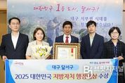 브릿지저널 김진석 기자 | 대구 달서구가 지난 25일 국회도서관 대강당에서 열린 ‘2025 대한민국 지방자치 행정대상’을 수상했다고 29일 밝혔다. 민선 8기 이후 공약 이행, 투명·청렴, 지역 특성화 정책 등 전 분야에서 거둔 정량·정성 성과가 종합적으로 인정받은 결과다. 이번 시상은 대한민국의정대상·지방자치행정대상 조직위원회가 주관하며, 전국 지자체를 대상으로 공약 이행 수준, 투명성·청렴성, 지역 특화 시책 등을 다각도로 평가해 우수 자치단체를 선정한다. 달서구는 민선 8기 6대 분야 59개 공약사업을 체계적으로 추진해 주민 체감 성과를 창출했고, 구민평가단 운영과 홈페이지 공개 등 열린 행정으로 한국매니페스토실천본부 주관 ‘전국기초단체장 공약이행평가’ 2년 연속 최고등급(SA)을 기록했다. 또한 청렴도 평가에서 전국 유일 12번째 ‘우수기관’으로 선정되는 등 신뢰 행정을 공고히 했다. 디지털 전환과 도시경쟁력 측면에서도 성과를 냈다. 달서구는 대구·경북 기초단체 최초로 국토교통부 ‘스마트도시 인증’ 및 재인증을 획득했으며, 기후위기 대응 노력으로 대구 최초 ‘그린시티