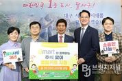 브릿지저널 김진석 기자 | 대구 달서구(구청장 이태훈)는 대구광역시사회복지협의회와 이마트로부터 추석맞이 명절키트 100세트(약 700만원 상당)를 기탁받았다고 29일 밝혔다. 이번 나눔은 복지 사각지대 해소와 한가위 이웃사랑 실천을 위해 마련됐다. 김석표 회장은 “달서구의 어려운 이웃들이 풍성한 명절을 보낼 수 있도록 작은 힘을 보태고자 했다”며 “앞으로도 이마트와 함께 지속적인 사회공헌 활동을 이어가겠다”고 말했다. 이태훈 달서구청장은 “어려운 여건 속에서도 따뜻한 나눔을 실천해 주신 대구광역시사회복지협의회와 이마트에 감사드린다”며 “소중한 후원품을 필요한 가정에 신속하고 투명하게 전달하겠다”고 전했다.