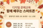 브릿지저널 윤나영 기자 | 철원교육도서관은 지역 고령층의 디지털 활용 능력 향상과 격차 해소를 위해 오는 10월 18일부터 11월 1일까지 매주 토요일, 총 3회에 걸쳐 ‘함께 배우는 스마트폰’ 디지털 문해교육을 운영한다. 이번 강좌는 지역 내 60세 이상 주민을 대상으로 철원교육도서관 3교육실에서 매주 토요일 오후 3시 30분부터 5시 30분까지 진행된다. 주요 내용은 △스마트폰의 기본 조작 △사진 촬영 △앱 설치 등 실습 중심으로 구성되며, 일상생활 속 스마트폰 활용 능력을 높일 수 있도록 돕는다. 강좌는 10월 1일부터 15일까지 도서관 방문 또는 전화로 신청할 수 있으며, 선착순 10명을 모집한다. 김민서 관장은 “이번 강좌를 통해 어르신들이 디지털 사회에 적극 참여하고, 스마트 기기를 활용한 소통과 문화 활동으로 정서적 안정과 삶의 활력을 되찾길 기대한다.”라며 “어르신들의 자신감 회복과 사회적 고립 예방에도 도움이 될 것이다.”라고 말했다. 자세한 내용은 철원교육도서관 누리집을 참고하거나 철원교육도서관으로 문의하면 된다.