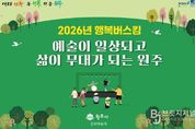브릿지저널 윤나영 기자 | 원주시는 지역 예술가들의 공연 기회를 확대하고 시민들에게 다양한 문화서비스를 제공하기 위해 ‘2026년 상반기 원주행복버스킹’을 운영한다. 이번 버스킹은 4월 22일부터 6월 12일까지 풍물시장 장날(끝자리 2·7일)에 문화공유플랫폼 야외공연장에서 열린다. 평일은 총 3팀이 오후 1시부터 1시간 동안, 주말은 5∼6팀이 낮 12시부터 2시간 동안 공연을 진행한다. 상반기 원주행복버스킹 공연팀은 공개 모집을 통해 심사를 거쳐 선발됐으며, 노래·밴드·통기타 라이브·전통무용 등 수준 높고 다양한 장르의 공연을 선보일 예정이다. 박혜순 문화예술과장은 “원주행복버스킹을 통해 원주에서 활동하는 예술인들의 열기를 느껴보시길 바란다”라며, “다채로운 공연으로 시민들과 문화로 소통하는 기회를 넓혀가겠다”라고 말했다.