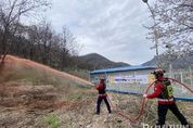브릿지저널 윤나영 기자 | 영월군은 영월국유림관리소와 합동으로 산불 취약 공공시설에 대한 산불지연제 사전 살포를 완료하며 산불 대응력을 강화했다고 밝혔다. 이번 산불지연제 살포는 건조한 날씨와 강풍으로 산불 발생 위험이 높아짐에 따라 주요 시설을 보호하고 산불 확산을 사전에 차단하기 위해 추진됐다. 지난 4월 14일에는 국가중요시설 ‘다’급인 한국남부발전 영월빛드림본부를 대상으로 산불지연제를 살포했다. 고성능 산불진화차 2대와 다목적 산불진화차 2대를 투입해 총 3톤의 지연제를 살포했으며, 서측 방면 약 0.5ha 구간에 총연장 800m 규모의 산불 차단선을 조성했다. 이어 4월 15일에는 영월군 양묘장과 환경자원화시설(소각시설)에 대한 추가 살포를 진행했다. 양묘장에는 0.5톤, 환경자원화시설에는 1톤의 지연제를 각각 살포해 산불 확산 방지 조치를 마쳤다. 영월군은 이번 사전 살포를 통해 주요 시설 보호는 물론 초기 대응 시간을 확보하는 등 보다 효과적인 산불 대응 체계를 구축했다. 백윤권 산림정원과장은 “산림청과의 긴밀한 협력을 통해 산불 취약지역과 주요