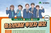 브릿지저널 김진석 기자 | 대구광역시는 건강하고 바른 성장으로 지역사회의 귀감이 된 청소년을 발굴·포상하기 위해 ‘2026년 제38회 대구광역시 청소년대상’ 후보자를 2월 24일부터 3월 20일까지 공개 모집한다. 1989년 첫발을 내디딘 ‘청소년대상’은 건강하고 올바른 청소년 상(像) 정립을 위해 매년 각 분야의 모범 청소년을 시상해 왔다. 지난해까지 총 250명(대상 36명, 우수상 111명, 장려상 103명)의 수상자를 배출하며 지역을 대표하는 청소년 포상으로 자리 잡았다. 후보자 자격은 공고일(2.23.) 현재 대구시에 1년 이상 계속 거주하고 있는 만 9세 이상 24세 이하 청소년으로, 구청장·군수, 학교장, 청소년 관계기관장 등의 추천을 통해 접수할 수 있다. 시상 부문은 △선행효행 △창의인재 △푸른성장 3개 분야며, 선정 인원은 대상 1명을 포함해 각 부문별 우수상 1명, 장려상 1명씩 총 7명이다. 대상은 수상 후보자 중 여러 면에서 성품과 행동이 가장 훌륭해 모든 청소년의 귀감이 되는 청소년에게 수여된다. 선행효행 부문은 지역사회를 위한 봉사활동 중 선행을 하거나, 부모
