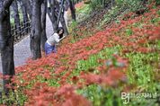 브릿지저널 윤나영 기자 | 울산 남구 선암호수공원이 가을을 붉게 수놓은 꽃무릇으로 물들고 있다. 남구에 따르면, 호수 산책로 4km와 축구장 옆 테마쉼터에 조성된 49만여 본의 꽃무릇은 9월 20일부터 개화해 10월 초까지 이어지며, 특히 9월 마지막 주말 절정을 맞아 가장 화려한 풍경을 만날 수 있다. 개화 후 약 열흘간 이어지는 붉은 물결은 시민들의 일상에 특별한 가을의 감동을 전한다. 남구는 2019년부터 꽃무릇을 심기 시작해 꾸준히 확장해 왔고 올해 '선암호수공원 명품둘레길 조성 사업'을 통해 약 2만 5천여 본의 꽃무릇을 추가로 심어 총 51만 5천여 본 규모의 대규모 군락지로 거듭나도록 할 예정이다. 아울러 수선화, 왜성조팝나무 등 다양한 초화류와 수목을 심고 휴게공간도 조성해 시민들이 풍성한 볼거리와 쾌적한 휴식을 즐길 수 있도록 할 계획이다. 꽃무릇은 수선화과에 속하는 여러해살이 구근식물로 본래 이름은 돌 틈에서 나오는 마늘종 모양을 닮아 '석산화(石蒜花)'라 불리며 특히 잎이 나기 전 꽃이 먼저 피는 독특한 특성으로 인해 '이루지 못할 사랑'이라는 꽃말이 유래했다. &
