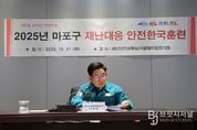브릿지저널 김경미 기자 | 마포구는 10월 21일 오후 2시, 재난안전상황실과 서울월드컵경기장 서문 일대에서 ‘2025년 재난대응 안전한국훈련’을 실시했다. 이번 훈련은 재난안전대책본부의 역할과 기능을 점검하고, 기관 간 공조체계를 강화해 재난 발생 시 신속하고 효과적으로 대응하기 위해 마련됐다. 본 훈련에 앞서 같은 날 오전 11시에는 대한적십자사봉사회 마포구협의회 주최로 ‘안전한국 훈련-구호급식 모의훈련’이 진행됐다. 재난, 화재, 수해 등으로 일상적인 식사 제공이 불가능한 상황을 대비해, 적십자사 회원 30여 명과 마포구, 마포소방서, 마포경찰서 등 유관기관 관계자들이 표준 구호식단(쌀밥, 참치김치찌개, 소불고기, 두부조림 등)을 배식하며 현장 대응 능력을 점검했다. 박강수 마포구청장은 현장을 찾아 직접 배식에 참여하고 봉사자들을 격려했다. 이후, 박 구청장은 지진으로 인한 건물 붕괴, 화재, 가스 폭발, 싱크홀 발생 등 복합재난 상황을 가정한 본 훈련에 참여했다. 오후 2시, 서울월드컵경기장 인근에서 규모 5.8의 지진이 발생했다는 가상 상황이 선포되자, 재난안전상황