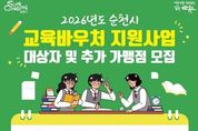 브릿지저널 김경미 기자 | 순천시가 가정형편 등으로 학원 수강이 어려운 취약계층 가정 학생들에게 수강료를 지원하는 교육바우처 사업을 시행한다. 2026년 교육바우처 지원사업은 기초수급자·차상위계층·한부모·조손·다자녀 가정 등의 초·중·고등학생을 대상으로 예체능, 직업기술, 제2외국어 과목(국·영·수 제외)에 대해 수강료를 지원하는 사업이다. 희망자는 시 홈페이지 게시판, 읍면동 행정복지센터를 통해 신청서 작성 및 구비서류를 준비해 1월 19일부터 2월 20일까지 주소지 읍면동 행정복지센터에 방문․제출하면 된다. 지원 대상자는 자체 선정심사를 통해 확정 후 3월부터 12월까지 수강료를 지원받게 되며, 선정된 학생들에게 교육바우처 카드를 지급, 가맹점으로 등록된 학원에서 사용하면 된다. 또한, 교육바우처 지원사업에 참여를 원하는 학원은 가맹점 등록 신청서 등을 작성해 순천시 평생교육과로 제출하면 된다. 시 관계자는 “순천시 교육바우처 지원 사업으로 가정형편이 어려운 학생들이 교육비 걱정을 덜고 배움의 기회를 넓히는 데 도움이 되기를 바란다”며, “앞으로도 누구나 공평하게 교육받을 수 있는