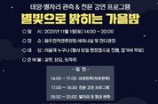 브릿지저널 김경미 기자 | 동두천시시설관리공단은 오는 11월 1일 동두천자연휴양림에서 가을밤 하늘을 배경으로 별자리와 행성을 함께 관측하는 '천문행사 ‘별빛으로 밝히는 가을밤’'을 개최한다. 이번 행사는 시민이 자연 속에서 직접 천체를 관측하며 과학문화의 즐거움을 체험하고, 가족 단위 방문객에게는 휴식과 소통의 시간을 제공하기 위해 마련됐다. 행사는 오후 2시부터 8시까지 자연휴양림 어울림동 세미나실 및 잔디마당 일원에서 진행된다. 낮에는 태양 전용 망원경을 활용한 태양 관측 체험, 저녁에는 전문 강연과 함께 달·행성·별자리 관측 프로그램이 운영된다. 또한 시민 참여형 이벤트인 ‘별자리 퀴즈’도 열려 참가자들이 과학을 보다 쉽고 흥미롭게 접할 수 있도록 구성됐다. 이종진 동두천시시설관리공단 이사장은‘별빛으로 밝히는 가을밤’은 가족과 함께 별을 보며 자연의 아름다움과 과학의 신비로움을 동시에 느낄 수 있는 뜻깊은 행사”라며“앞으로도 시민이 함께 참여할 수 있는 ESG형 과학문화 프로그램을 지속적으로 추진하겠다”라고 밝혔다.