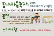 브릿지저널 김경미 기자 | 동두천시 송내동 주민자치위원회는 오는 11월 2일 오후 2시부터 지행역 1번 출구 메타세콰이아길에서 ‘2025 송내마을축제’를 개최한다고 밝혔다. 이번 축제는 주민자치센터 프로그램 수강생을 비롯해 지역 학교, 동아리, 학원 등 다양한 주민이 참여해 주민자치 활성화와 지역 문화·예술 교류의 장을 마련하고자 기획됐다. 행사 당일에는 송내동 주민 노래자랑, 주민자치 프로그램 발표회·전시회, 초청공연, 체험부스, 벼룩시장, 먹거리 마당 등 다채로운 프로그램이 진행된다. 특히 주민이 직접 참여하는 노래자랑과 맷돌체조, 트롯고고장구, 실버태권도 등 7개 팀의 프로그램 발표회가 마련돼, 지역 주민들이 그동안 갈고닦은 실력을 선보일 예정이다. 또한 도자기 만들기, 팽이 꾸미기, 만년도장 만들기 등 가족 단위로 즐길 수 있는 체험부스도 함께 운영된다. 이번 축제는 송내동 주민의 화합과 자긍심을 높이는 것은 물론, 주민자치센터 프로그램 홍보와 신규 수강생 유치에도 도움이 될 것으로 기대된다. 아울러 지역 소상공인과 시민이 함께 참여하는 벼룩시장도 열려 지역경제 활성화에도 기여할 전망이다.