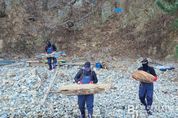 브릿지저널 윤나영 기자 | 울산 동구는 2월 20일 오전 대왕암공원 출렁다리 밑 해안 일대에서 해양쓰레기를 수거하는 해안 정비 활동을 했다. 동구는 지역의 대표 관광지인 대왕암공원 출렁다리를 방문하는 관광객이 아름다운 해안경관을 즐길 수 있도록 출렁다리 밑 해안가로 밀려오는 부표와 나무토막, 해초 등 해양쓰레기를 매일 수거해 한곳에 모아 두었다가 1~2달마다 선박을 통해 치우고 있다. 이날 환경공무직 등 동구청 직원 10여명은 선박을 활용해 약 1.5톤 분량의 해양쓰레기를 깨끗하게 치웠다. 동구청 관계자는 "대왕암공원 주변의 해안가를 깨끗하게 유지하기 위해 평소에 정기적으로 정비하고 있다"라며 “앞으로도 지속적인 환경 관리로 관광객이 찾고 싶은 해양 관광지를 만들어 나가겠다”라고 말했다.