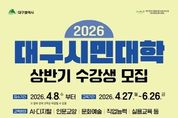 브릿지저널 김진석 기자 | 대구광역시는 시민의 평생학습 기회를 확대하고 변화하는 학습 수요를 반영해 4월 8일부터 ‘2026년 상반기 대구시민대학’ 수강생을 모집한다. 이번 상반기 시민대학은 4월 27일부터 6월 26일까지 약 2개월간 운영되며, 시민이 직접 제안한 21개 강의와 5개 기획 강의 등 총 26개 강좌로 구성됐다. 강좌는 인공지능(AI)·디지털, 인문교양, 문화예술, 직업능력, 실용교육 등 시민의 일상과 밀접한 다양한 분야를 아우르며, 참여형·체험형 교육을 강화해 실질적인 학습 효과를 높였다. 주요 강좌로는 ▲AI와 함께하는 나만의 인생 영상 ▲신중년 경력 설계 수립의 다양한 사례 이해 ▲백세시대의 자연치유 건강법 ▲색연필 보타니컬아트 ▲생활 속 아로마테라피 DIY 클래스 등이 있다. 특히 올해는 강좌별 운영 횟수를 기존 3회에서 5회로 확대해 학습의 연속성을 높이고, AI 대전환 흐름에 맞춰 관련 강좌를 기초·심화 단계로 세분화해 수준별 맞춤 교육이 가능하도록 설계했다. 또한 교육 장소를 대구평생교육진흥원 대구지식발전소(북구 연암로 40, 산격청사)뿐 아니라 외부 교육