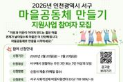 브릿지저널 김경미 기자 | 인천 서구는 주민 스스로 지역 문제를 해결하고 마을공동체의 성장을 도모하는 ‘2026년 서구 마을공동체 만들기 지원사업’ 참여 공동체와 마을지원활동가를 모집한다. 올해로 8년째 운영되는 이 사업은 주민 간 협력을 바탕으로 마을공동체가 지속적으로 성장할 수 있도록 지원하는 데 목적을 두고 있다. 지원유형은 일반형과 기획형으로 구분하며 ▲일반형은 초기형(최대 100만 원)과 성장발전형(최대 300만 원)으로 총 40개 공동체 ▲기획형은 돌봄, 협업, 네트워크, 공간 등 특정 주제 6개 유형으로 유형별 최대 500만 원에서 1,500만 원까지 총 14개 공동체를 선발하며, 인천 서구 지역에 생활하는 주민 3인 이상 모임이면 누구나 신청할 수 있고 신청 기간은 2026년 2월 20일(금)부터 3월 20일(금)까지다. 서구사회적경제마을지원센터는 주민들의 이해를 돕기 위해 사전컨설팅을 운영하여, 다양한 공동체가 참여하는 내실 있는 성과를 기대하고 있다. 신청 자격 등 자세한 사항은 인천 서구청 홈페이지 고시공고 및 센터 홈페이지에서 확인할 수 있고, 기타 문의는 서구사회적경제마을지원센터로 연락