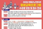 브릿지저널 김경미 기자 | 지역 어르신들의 활기찬 노후 생활 지원과 평생학습 기회 확대를 위해 ‘2026년 평생교육프로그램’ 수강생을 모집한다고 밝혔다. 영동군에 거주하는 만 60세 이상 어르신을 대상으로 하며, 2월 23일부터 12월 18일까지 약 10개월간 운영된다. 교양·정보화·건강증진 등 4개 영역 28개 과목으로 1,300명을 모집하며, 황간 지역은 지역 특성을 반영한 4개 과목에서 100명을 모집해 총 1,400명 규모로 프로그램이 진행될 예정이다. 사전 접수는 1월 26일부터 1월 30일까지 5일간 진행된다. 영동은 신청 인원이 모집 정원을 초과할 경우 추첨제로 수강생을 선발하며, 공개 추첨은 2월 2일 오후 2시, 유튜브 ‘영동군노인복지관’ 채널을 통해 실시간으로 중계될 예정이다. 황간 지역은 선착순 접수로 수강생을 확정한다. 수강료는 과목당 연 1만 원이며, 기초생활수급자와 국가유공자는 최대 2과목까지 무료 수강이 가능하다. 영동군노인복지관은 “어르신들이 배움을 통해 성취감을 느끼고, 이웃과 소통하며 건강한 여가생활을 즐기실 수 있도록 다양한 프