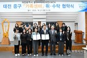 브릿지저널 정보영 기자 | 대전 중구는 27일 (사)대전YWCA(대표 홍유미)와 함께 ‘중구가족센터’ 운영 위·수탁 협약을 체결했다고 밝혔다. 대전YWCA 강당에서 열린 이번 협약식에는 김제선 중구청장과 홍유미 (사)대전YWCA 대표를 비롯한 양 기관 관계자들이 참석했다. 이번 협약식은 내년 가족센터 개소를 앞두고 김제선 중구청장이 가족센터 예정지를 직접 방문해 전환 추진 현황을 점검하고, 수탁기관과 함께 향후 안정적인 운영 방안을 논의하기 위해 마련됐다. 참석자들은 지역사회 가족지원체계 강화를 위한 협력 의지를 다졌다. 내년 1월 문을 여는 중구가족센터는 기존 중구다문화가족지원센터의 기능을 확장해 새롭게 출범하는 기관이다. (사)대전YWCA는 2015년부터 올해까지 다문화가족지원센터를 위탁 운영하며 쌓은 경험과 전문성을 높게 평가받아 지난 16일 가족센터 수탁기관으로 최종 선정됐으며, 내년부터 2030년까지 5년간 센터 운영을 맡아 지역 여건과 가족 특성을 반영한 맞춤형 통합가족서비스를 제공할 예정이다. 중구가족센터는 다문화가족뿐 아니라 한부모·조손·맞벌이·청소년 등 다양한 가족을 포괄하는 보편적 가족지원기관