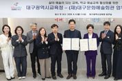 브릿지저널 김진석 기자 | 대구시교육청은 4월 6일 오전 11시, 대구시교육청 접견실에서 (재)대구문화예술회관과 ‘학교 예술교육 활성화’를 위한 업무협약(MOU)을 체결했다. 이번 업무협약은 대구문화예술회관이 보유한 우수한 문화예술 프로그램을 지역 학교 현장에 원활하게 연계·확산하기 위해 마련됐다. 양 기관은 이를 통해 학생들의 예술적 감성을 키우고 교사의 예술교육 역량을 강화함으로써, 학교 예술교육의 내실을 기하는 데 힘을 모으기로 했다. 특히 지역사회의 전문적인 문화예술 인프라를 학교 교육과정과 유기적으로 연결하여, 학생들이 일상 속에서 예술을 즐기고 교육 격차를 해소할 수 있는 환경을 조성할 방침이다. 양 기관은 이번 업무협약을 통해 ▲학생 대상 문화예술교육 프로그램 운영 ▲교사 대상 문화예술교육 역량 강화 연수 운영 ▲문화예술교육 콘텐츠 개발 및 협력 ▲문화예술 프로그램 활성화를 위한 홍보 등 다양한 분야에서 지속적으로 협업을 이어갈 계획이다. 강은희 교육감은 “대구문화예술회관과의 협력으로 우리 미래 세대가 풍부한 예술적 감성을 키울 수 있는 소중한 토대를 마련하게 되어 기쁘