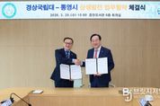 브릿지저널 김경미 기자 | 통영시는 경상국립대학교(총장 권진회)와 함께 지역 유일의 대학인 해양과학대학의 교육·연구 기반 강화와 운영 활성화를 위해 경상국립대학교 가좌캠퍼스 중앙도서관 6층 회의실에서 ‘통영시·경상국립대학교 상생발전을 위한 업무협약’을 25일 체결했다. 이날 협약식은 천영기 통영시장, 권진회 경상국립대총장, 문성주 해양과학대학장을 비롯해 통영시와 경상국립대학교의 주요 간부급 인사들이 대거 참석한 가운데, ▲식전 차담 ▲홍보영상 상영 ▲기관장 인사 말씀 ▲업무협약 서명 ▲기념촬영 순으로 진행됐다. 이번 협약은 해양과학대학의 교육·연구 기능 등을 강화해 지역사회를 활성화하고, 대학 인근 상권 침체 등 지역의 위기를 선제적으로 극복하기 위해 마련됐다. 주요 내용으로는 ▲해양과학대학 주변 정주환경 개선을 위한 ‘협력 플랫폼’ 구축·운영 ▲대학 시설물을 활용한 체류형 교육과정 개설 및 지역 연계 비교과 프로그램 공동 운영 ▲교육특구사업과 연계한 해양레저 교육 인프라 구축 및 교육프로그램 공동 추진 ▲통영지역 중점산업과 연계한 외국인 유학생·연수생 및 각종 행사 유치를 통한 대학 경쟁력 강화와 지역 경제