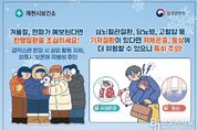 브릿지저널 김경미 기자 | 제천시보건소(소장 안순덕)가 겨울철 한파로 인한 건강 피해를 예방하기 위해 독거 어르신, 만성질환자, 거동 불편자 등 건강 취약계층을 대상으로 집중 건강관리를 추진한다. 이번 방문 건강관리는 보건소 방문간호 인력이 가정을 직접 방문하거나 전화와 문자로 안부를 확인하는 방식으로 진행된다. 간호 인력은 혈압과 혈당 등 기초 건강 상태를 수시로 점검하고, 저체온증과 동상 등 한랭질환 예방 수칙을 집중적으로 안내할 계획이다. 또한 실내 온도 유지, 외출 자제, 방한용품 착용, 수분 섭취 등 생활 수칙을 홍보하고, 필요한 경우 넥워머와 무릎 양말 등 방한용품을 제공한다. 이와 함께 돌봄 기관과의 협력을 통해 지역 내 건강 안전망을 강화할 예정이다. 한파로 인해 저체온증이나 동상 같은 한랭질환 위험이 커지고, 심뇌혈관 질환 등 기저질환자의 경우 증상이 악화할 가능성이 높아지는 만큼 보건소는 대상자의 건강 상태를 자세히 확인하고 맞춤형 예방 관리를 지속적으로 추진할 방침이다. 보건소 관계자는 “구강 건강은 노년 건강의 핵심 요소인 만큼, 취약계층 어르신들이 건강하고 따뜻한 겨울을 보낼