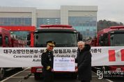 브릿지저널 김진석 기자 | 대구소방안전본부는 12월 23일 오후 2시, 소방교육훈련센터에서 소방차량 무상양여 기증식을 가지고, 페루에 소방차량 3대를 양여했다. 소방차량 기증은 사용 연한이 경과된 소방차량을 개발도상국에 지원해 현지 소방 환경을 개선하고, 국제 소방협력 체계를 강화하기 위해 추진됐다. 대구소방안전본부는 2018년부터 현재까지 총 27대의 소방차량을 개발도상국에 지원하고 있다. 이 차량들은 소방 환경이 열악한 국가에 화재 등 각종 재난 대응에 실질적인 도움이 되고 있다. 지난 23일 대구소방교육훈련센터에서 열린 소방차량 무상양여 기증식에는 엄준욱 대구소방안전본부장과 조지 페리토 주 페루 대한민국대사관 참사관, 사단법인 사회적경제허브센터 김원규 대표 등이 참석했다. 엄준욱 대구소방안전본부장은 “이번에 지원하는 소방자동차가 페루 현지 재난에 실질적으로 활용돼 국민의 안전에 기여하길 바란다”며, “앞으로도 양국 간 우호 협력 증진과 소방안전 환경 개선을 위해 지속적으로 노력하겠다”고 말했다. 페루대사관 참사관은 이번 사업을 총괄한 대구소방안전본부와 사회적기업인