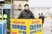 브릿지저널 윤나영 기자 | 강원특별자치도의회 문관현 기획행정위원장은 27일 여의도 국회 앞에서 ‘강원특별법 3차 개정안’의 조속한 처리를 촉구하며 릴레이 1인 시위에 나섰다. 개정안 통과를 위해 누구보다 앞장서 온 강원특별자치도의회의 상임위원장이 도민을 대신해 국회 앞에서 직접 행동에 나섰다는 점에서 큰 의미를 갖는다. 문 위원장은 국회 정문 앞에서 피켓을 들고 “강원특별법 3차 개정안은 강원의 미래를 여는 열쇠이자 300만 도민의 절박한 요구”라며,“도민의 명령을 받드는 도의회가 더는 침묵할 수 없다. 국회는 즉각 심사에 착수해야 한다”고 강하게 외쳤다. 그는 올해 내내 강원특별법 개정을 위해 중앙부처·국회·전문가 그룹과의 논의를 직접 챙기며 ‘책상에서만 말하는 정치가 아닌, 현장에서 답을 찾는 정치’를 강조해 왔다. 이번 1인 시위 역시 이러한 실천적 리더십의 연장선으로, 지역의 핵심 현안을 단순히 주장하는 데 그치지 않고 ‘몸으로 밀어붙이는 추진력’을 보여준 셈이다. 특히 “강원특별자치도가 실질적인 권한을 갖고 미래 전략을 스스로 주도하기 위해서는 3차 개정이 필수”라며, “정치적