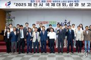 브릿지저널 김경미 기자 | 제천시는 지난 1일 제천시청 5층 청풍호실에서 '2025년 제천시 국제대회'성과보고회를 개최했다. 보고회에는 김창규 제천시장, 박영기 제천시의회 의장, 김경석 대한롤러스포츠연맹 회장(이상 공동조직위원장), 장재돈 대한체조협회 고문과 안성국 제천시체육회장(집행위원장), 오재성 제천시체조협회장, 최호열 제천시롤러스포츠연맹회장(이상 공동 사무총장) 및 유관기관, 단체장 3명과 종목단체 임원 및 회원 50여 명이 참석했다. 이날 보고회는 올해 제천시에서 열린 국제대회인 '2025 기계체조 아시아선수권대회(6.1.~6.15.)'와 '2025 아시아 롤러스케이팅 선수권대회(7.19.~7.30.)'의 성공 개최를 기념하고, 대회 관계자들의 노고를 격려하며 성과를 공유하는 자리였다. 행사는 유공 기관·단체에 대한 감사패 수여와 유공자 표창 순으로 진행됐다. 제천시장 감사패는 대회 유치와 개최를 주관한 ▲대한롤러스포츠연맹(회장 김경석) ▲제천시롤러스포츠연맹(회장 최호열) ▲대한체조협회(공석) ▲제천시체조협회(회장 오재성)에 수여됐다. 또한, 두 대회를 실질적으로 준비하고 집행한 ▲제천시체육회(회장 안