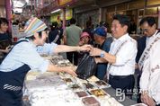 브릿지저널 김경미 기자 | 송인헌 충북 괴산군수가 추석을 앞두고 괴산전통시장을 찾아 상인들과 인사를 나누고 직접 장보기에 나섰다. 3일, 송 군수는 괴산전통시장 곳곳을 돌며 제철 농산물과 수산물 등을 직접 구입하고, 상인들과 일일이 악수하며 현장의 생생한 목소리를 청취했다. 인근 상가를 찾아 상인들을 격려하고, 명절 경기 회복에 대한 기대감을 나누며 민심을 살폈다. 주민들과도 반갑게 인사를 주고받으며 정겨운 명절 분위기를 더했다. 송 군수는 “민족 고유의 명절을 앞두고 군민과 상인들이 함께 따뜻한 정을 나누며 즐거운 추석을 보내길 바란다”며 “전통시장이 활력을 되찾고 지역경제가 살아날 수 있도록 적극 지원하겠다”고 말했다. 괴산군은 지난 9월부터 지역화폐인 ‘괴산사랑카드’에 5% 캐시백 혜택을 적용하고 있다. 개인 월 구매 한도도 기존 70만 원에서 100만 원으로 상향 조정해 지역 내 소비 촉진에 힘을 싣고 있다.