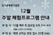 브릿지저널 김경미 기자 | 음성군 제8대 유엔사무총장 반기문 평화기념관에서는 관람객에게 다채로운 즐길 거리를 제공하기 위해 12월 크리스마스를 주제로 주말 무료체험 프로그램을 운영한다. 해당 프로그램은 12월 6일부터 28일까지 매주 토·일요일(오후 2시~4시, 재료 소진시 조기 마감)에 진행된다. 매회 선착순 25명을 대상으로 당일 오후 2시 현장에서 접수하며, 누구나 무료로 참여할 수 있다. 토요일에 운영하는 ‘크리스마스 리스 만들기’ 프로그램은 나무 리스 베이스에 목화솜과 솔방울 등 다양한 오너먼트를 자유롭게 장식해 나만의 크리스마스 리스를 제작하는 체험이다. 일요일에는 ‘크리스마스 트리 캔들 만들기’ 프로그램을 진행한다. 녹색, 화이트, 레드 등 크리스마스를 연상시키는 색상을 활용, 트리 모양의 장식 요소를 더해 향기 캔들을 완성해 보는 체험이다. 연말을 맞아 크리스마스 주제로 운영되는 이번 주말 체험은 완성된 작품을 인테리어 소품이나 연말 선물로 활용할 수 있어 참여 만족도가 높을 것으로 기대된다. 장정자 평생학습과장은 “다가오는 주말, 반기문평화기념관에서 크리스마