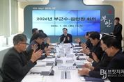 브릿지저널 윤나영 기자 | 부안군은 20일 군청 3층 중회의실에서 정화영 부군수 주재로 2026년 부군수-읍·면장 회의를 개최하고 2025년 주요 성과와 2026년 군정 운영방향을 공유하며 읍·면 현안에 대한 사전 점검에 나섰다고 밝혔다. 이번 회의는 오는 26일부터 추진 예정인 2026년 군민과의 희망소통대화를 보다 내실 있게 운영할 수 있도록 사전 준비 차원에서 마련됐다. 회의에서는 부안의 미래 비전과 주요 성과, 부안형 바람연금 추진 현황을 비롯해 각 읍·면별 주요 현안과 건의사항을 공유하며 지역 여건을 종합적으로 점검했다. 특히 정화영 부군수는 읍·면장들과의 심도 있는 논의를 통해 현장 중심 행정의 중요성을 강조하며 군민과의 희망소통대화 과정에서 주민 의견이 실질적인 군정에 반영될 수 있도록 적극적인 역할을 당부했다. 정화영 부군수는 “군민과의 희망소통대화는 단순한 연초 방문이 아니라 지난 성과를 공유하고 앞으로의 군정을 함께 설계하는 소중한 자리”라며 “읍·면장들과 충분한 사전 소통을 통해 군정에 대한 공감대를 높이고 군민이 체감할 수 있는 행정을 펼쳐 나가겠다”고 말했다. 한
