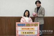 브릿지저널 윤나영 기자 | 부산진구 당감4동는 올해 초등학교 1학생인 권봄 학생이 지역 내 경제적으로 어려운 친구들을 돕기 위해 인생 첫 돼지저금통으로 모은 23만7천 원을 기탁했다는 훈훈한 소식을 전했다. 권봄 학생의 보호자는 “이 돼지저금통은 권봄이 태어난 이후로 지금까지 차곡차곡 모은 첫 재산”이라며 “의미 있게 사용하고 싶다는 생각에 어려운 친구들을 위한 기부 이야기를 건넸더니 아이가 망설임 없이 고개를 끄덕였다”고 기부 동기를 전했다. 이에, 강진옥 동장은 “갖고 싶은 장난감도 있고, 하고 싶은 일이 많은 나이임에도 불구하고 어려운 친구를 위해 돼지저금통을 선뜻 내어준 모습이 매우 기특하다”며 “오늘처럼 앞으로도 따뜻한 마음을 지닌 멋진 어린이로 자라기를 바란다”고 감사의 뜻을 전했다. 이날 기탁된 성금은 학생과 보호자의 바람대로 지역 내 저소득 취학 아동 가구에 지원될 예정이다.