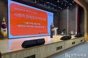 브릿지저널 윤나영 기자 | 강원특별자치도교육청은 4월 14일 오전 10시 강원특별자치도교육청 6층 대강당에서 전 직원을 대상으로 ‘다름의 이해, 마음의 이음’을 주제로 제46회 장애인의 날 기념행사를 개최했다. 이번 기념행사는 장애인식개선 교육과 연계하여 진행됐으며, 발달장애인과 비장애인이 함께하는 통합오케스트라 ‘아인스바움’의 공연으로 구성됐다. 아인스바움은 ‘하나의 나무’라는 뜻을 가진 사회적 기업으로 장애인, 비장애인, 경계선지능인 등 다양한 구성원이 음악을 통해 진정한 사회통합 모델을 보여주는 단체이다. ‘음악으로 이야기하는 다양성 존중 콘서트’는 발달장애인 인식개선 강사의 스토리텔링과 함께 통합오케스트라 연주, 타악기 퍼포먼스, 노래 등 다채로운 무대를 선보였다. 특히 발달장애인 강사의 유년기와 청소년기의 경험, 그리고 통합 오케스트라 활동을 통해 변화된 삶에 대한 이야기로 감동을 전하고 장애인과 비장이애인이 함께 하나의 선율을 만들어내는 과정을 통해 교직원들이 서로의 다름을 존중하고 사회통합의 필요성을 직접 체감할 수 있는 시간을 가졌다. 장애인의 날을 기념하여 각급학교에서는