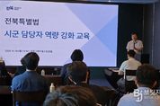 브릿지저널 윤나영 기자 | 전북특별자치도가 시군과 함께 전북특별법의 성공적 안착을 위한 실무 역량 강화에 나섰다. 도는 29일 전주 그랜드힐스턴호텔에서 도내 14개 시군 특례 담당 공무원 50여 명이 참석한 가운데 '전북특별법 시군 담당자 역량 강화 교육'을 실시했다. 이번 교육은 전북특별법의 본격적인 시행에 따라 시군별 특례 발굴을 활성화하고, 발굴된 과제를 법제화로 연결하기 위한 실무 능력을 높이기 위해 마련됐다. 이날 ▲전북특별법 및 특례 제도 심화 강의 ▲시군 사례 분석과 특례 발굴 전략 ▲조문 작성 절차 및 법제화 과정 등 실무 중심 내용으로 구성됐다. 특히 각 시군이 발굴한 과제와 애로사항을 공유하며 해결책을 모색하는 토론도 이어졌다. 전북특별자치도는 앞으로도 시군 담당자 대상 실무 교육을 정례화해 역량을 지속적으로 강화하고, 발굴부터 법제화까지 이어지는 도-시군 협업 시스템을 공고히 해 나갈 계획이다. 또한 우수 사례를 적극 발굴·전파해 모든 시군이 균형 있게 발전할 수 있도록 지원한다는 방침이다. 강영석 특별자치교육협력국장은 “전북특별법의 성공적인 안착은 도와 시군이 함께