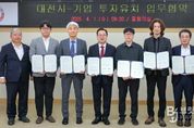 브릿지저널 정보영 기자 | 대전시는 1일 시청 중회의실에서 국내 유망기업 5개 사와 총 550억 원 규모의 신규 투자와 대전 이전에 대한 업무협약(MOU)을 체결했다. 이를 통해 250여 개의 일자리가 창출되는 등 지역경제 활성화에 기여할 것으로 전망된다. 이날 협약식에는 이장우 대전시장과 정태희 대전상공회의소 회장을 비롯해 정태영 ㈜동명씨앤에스 최고기술책임자(CTO), 황보제민 ㈜라이온로보틱스 대표, 이강헌 알엑스㈜ 대표, 선강훈 에이치앤파워㈜ 경영관리본부장, 류석진 유저스㈜ 대표가 참석했다. 협약에는 기업의 대전 이전 및 신설 투자와 함께 원활한 투자 진행을 위한 대전시의 행정적ㆍ재정적 지원과 신규고용 창출 및 지역경제 발전을 위한 공동 협력 방안이 담겼다. 서구 평촌 산업단지에는 첨단 기술과 나노코팅 기술을 결합한 경기장 관람석 의자 제조 기업 ㈜동명씨앤에스가 투자해 제품의 양산 능력을 확대할 예정이다. 유성구 탑립ㆍ전민지구에는 국방ㆍ재난ㆍ산업안전 분야 사족보행 로봇 제조 기업 ㈜라이온로보틱스와 인공지능(AI) 기반 소형모듈원자로(SMR) 디지털화 기술을 개발하는 알엑스㈜(대표 이