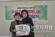 브릿지저널 김진석 기자 | ㈜채이은(대표 유나권)은 지난 18일 연말을 맞아 관내 어려운 이웃을 위해 성금 1,000만 원을 수성구청에 전달했다. ㈜채이은은 오아이씨(OIC) 화장품을 비롯해 건강기능식품과 생활용품 등을 유통하는 기업으로, K-화장품 열기에 힘입어 해외시장 진출도 적극 추진하고 있다. 평소 사회 공헌 활동에 관심이 많은 유나권 대표는 최근 경기 침체로 어려움을 겪는 지역사회에 힘을 보태고자 이번 성금을 기탁했다고 밝혔다. 수성구는 기탁받은 성금을 ‘희망수성 천사계좌’에 적립해 관내 소외계층을 위한 다양한 복지사업에 사용할 계획이다. 김대권 수성구청장은 “지역기업의 뜻깊은 기부는 지역사회에 큰 귀감이 되며, 다른 기업과 주민들에게도 나눔의 가치를 전하는 계기가 될 것”이라며 “따뜻한 나눔에 깊이 감사드리며, 성금이 우리 주변 이웃들의 삶에 도움이 될 수 있도록 소중히 사용하겠다”고 말했다.